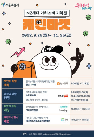 서울시가 가치소비 확산과 사회적경제기업의 판로 확대를 위해 9월 26일부터 11월 25일까지 '가치소비 특별기획전: 가치소비는? 캐빈마켓'을 개최한다. 이번 행사는 사회적경제쇼핑몰 '함께누리몰'을 중심으로 온라인에서 진행된다.가치소비를 이끌고 있는 100여 개 사회적경제기업, 사회적 가치를 추구하는 벤처기업이 참가하는 이번 기획전은 친환경 생활용품, 재활용 패션잡화 등 환경·사회 문제를 고려한 제품들을 할인된 가격으로 구매할 수 있는 기회이다. 특히 최근 청년 세대는 환경 문제와 사회적 가치에 많은 관심을 갖고 있는 터.또, 취약계