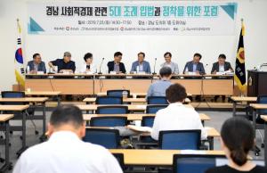 지난 23일 경남도의회 1층 대회의실에서는 경남 사회적경제와 관련해 중요한 포럼('경남 사회적경제 관련 5대 조례 입법과 정착을 위한 포럼')이 열렸다. 사회적경제 기업의 규모와 매출 그리고 종사자 등이 적은 편인 경남에서 '사회적경제가 활성화되기 위해서 어떤 조례가 필요한가?'에 대한 발제와 토론이 있었다. 이날 포럼은 경상남도와 경남사회연대경제사회적협동조합이 공동으로 주최하고 경남사회적경제통합지원센터가 주관하였으며 경남사회적경제협의회가 후원했다. 사회적경제는 문재인 정부가