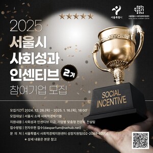 서울시 사회적경제지원센터, '2025 사회성과 인센티브 사업' 참여기업 모집