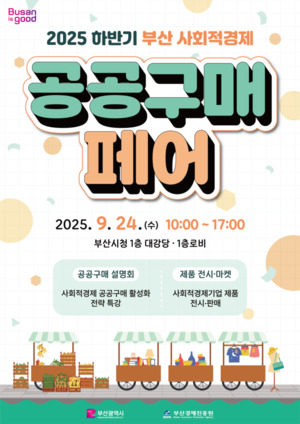 부산시는 24일 오전 10시 시청 1층 대강당과 로비에서 '2025 하반기 부산 사회적경제 공공구매 페어'를 개최한다. 이번 행사는 지역 사회적경제기업의 판로를 넓히고, 공공기관의 우선구매 필요성에 대한 인식을 높이기 위해 마련됐다.사회적경제(사회연대경제)는 양극화 해소와 일자리 창출 등 공동의 이익과 사회적 가치를 실현하기 위한 경제활동을 의미한다. 사회적경제기업에는 (예비)사회적기업, (사회적)협동조합, 마을기업, 자활기업 등이 포함된다. 부산시는 이러한 기업의 성장을 지원하기 위해 공공구매 페어를 매년 상·하반기로 나눠 개최하