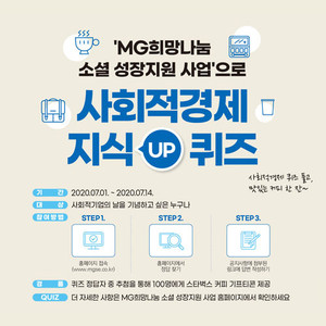 [사회적경제주간] MG새마을금고중앙회, MG희망나눔 소셜 성장지원 사업으로 '사회적경제 지식 UP 퀴즈' 이벤트 진행