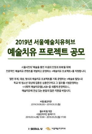 서울문화재단이 예술을 통해 서울시민의 심리적 안정과 회복을 돕는 를 6일부터 공개 모집한다고 밝혔다. 이번 지원사업은 '사회적 예술치유랩(LAB)'과 '예술로 힐링' 분야로 나뉘어 7개 팀을 선정하고 총 1억1000만원을 지원한다. '사회적 예술치유랩(LAB)' 분야는 사회적 위기계층의 심리적 안정과 회복을 위한 예술치유 모델을 만들고 확산시키기 위해 신설됐다. 특히 올해는 심리적 위기를 겪고 있는 학교 밖 청소년에 집중한다. 대상에 대한 심층연구를 통해 개발된 예술치유