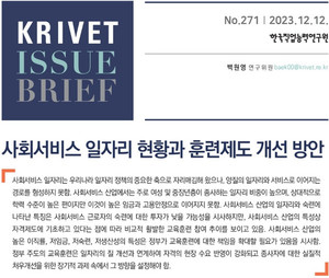 한국직업능력연구원이 'KRIVET Issue Brief 제271호(사회서비스 일자리 현황과 훈련제도 개선 방안)'를 통해 사회서비스 종사자의 특성을 분석한 결과를 12일 발표했다.※ 사회서비스 종사의 핵심 산업 직종은 산업군은 돌봄 및 보건 서비스 종사자, 사회복지 관련 종사자, 보건 의료 관련 종사자 등이며, 본 결과는 통계청의 「지역별고용조사(2022년 하반기 자료)」/「경제활동인구조사(2022)」/「고용형태별근로실태조사(2022)」와 고용노동부·한국고용정보원의 「직업능력개발통계연보(2021)」를 이용, 최근 사회서비스 일자리의