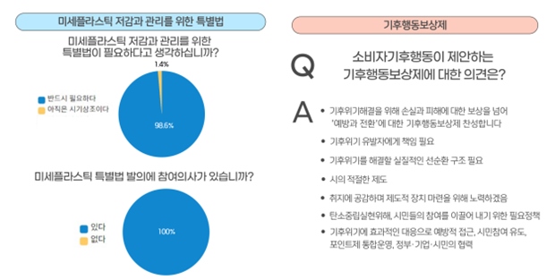 (사)소비자기후행동이 기후재난을 복구하는 비용으로 해마다 지출되는 비용을 예방과 전환을 위한 예산으로 전환하고, 탄소중립 실현을 위해 시민들의 자발적 참여를 확대할 수 있는 방안으로 제시한 '기후행동보상제'에 공감한다는 의견이 대다수였다.