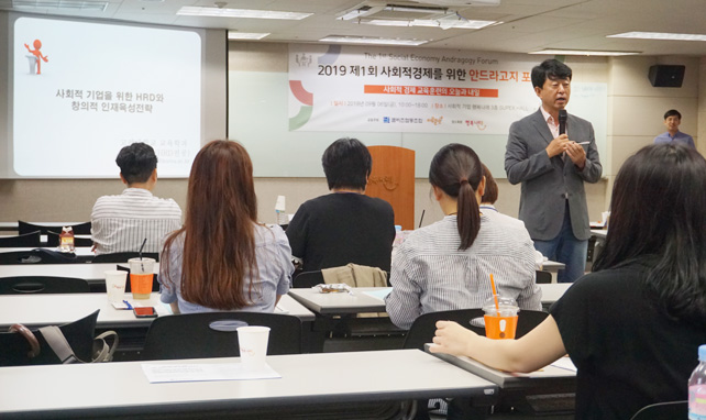 포럼에서는 강대중 서울대학교 교육학과 교수(한국평생교육학회 이사)와 조대연 고려대학교 교육학과 교수(고려대학교 HRD정책연구소 소장)를 초청해 '사회적경제와 안드라고지 : 삶과 앎'이란 주제와 '기업 HRD의 발전과 오늘'이란 주제로 강의를 진행했다.