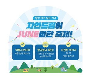 아이쿱자연드림(이하 자연드림)은 내달 3일까지 '자연드림이 JUNE비한 축제! 6월 썸머 페스타' 이벤트를 진행한다.6월 6일부터 12일까지 진행되는 '6월 썸머 페스타' 이벤트에서는 파이토케미컬이 더 풍부한 항암농산물로 만든 샐러드부터 미역국수, 다시마국수, 단백질바, 닭가슴살 등 몸과 마음이 가벼워지는 식품과 여름 필수 생활용품 70여 종을 최대 30% 가격 인하 혜택으로 만나볼 수 있다.6월 13일부터 26일까지 진행되는 '자연드림 유기농항암식품 농산물 페스타' 이벤트에서는 이미 항암효과가 입증된 자연드림유기농항암식품과 파이토