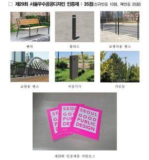 도심 곳곳에서 시민들이 자주 이용하고 볼 수 있는 벤치, 펜스, 가로등과 같은 공공시설물에 대한 디자인 공모가 열린다. 서울의 도시경관에 어울리면서도 기능성, 심미성 등을 갖춘 디자인이라면 지원해 볼 만하다.서울시는 시민의 삶의 질을 높이는 쾌적하고 활력이 넘치는 도시 생활환경 조성을 위해 출시 또는 출시 예정인 벤치, 펜스, 가로등 등 공공시설물을 대상으로 '제30회 서울우수공공디자인 인증제' 공모를 오는 4월 8일부터 26일까지 진행한다고 밝혔다.이번 제30회 인증제는 벤치, 파고라(그늘막), 휴지통(재활용수거함 포함), 공중화