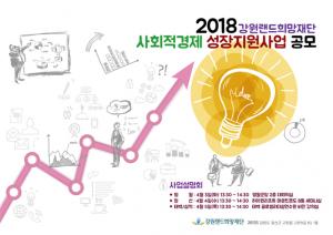 강원랜드희망재단이 이달 20일까지 '2018 사회적경제 성장지원사업' 공모를 실시한다. 이번 공모는 보건·환경·노동 등 사회적경제 영역에서 활동하고 있는 기업들의 실직절인 성장과 안정을 돕기 위해 마련됐다. 이번 공모는 폐광지역 4개 시·군(삼척시, 영월군, 정선군, 태백시)에 기반을 두고 1년 이상 활동한 사회적경제 영역 법인업체(사회적 기업, 협동조합, 마을 기업 등)를 대상으로 한다. 지원 분야는 조직·경영, 상품 개발·개선, 홍보·마케팅, 시설 개선 총 4개 세부분야로 나누어지며 선정된 업체에게는