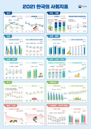 지난해 우리나라 국민 10명 중 2명은 외로움을 느끼고 있다는 사회조사 결과가 나왔다. 사망률은 악성신생물(암), 심장질환, 폐렴, 뇌혈관질환 순이며, 알츠하이머병으로 인한 사망률은 20년 전과 비교해 약 50배 수준으로 증가한 것으로 나타났다. 통계청은 24일 이런 내용을 담은 '2021년 한국의 사회지표'를 발표했다. 코로나19 상황 속 사회적 고립감을 느끼고 있는 국민은 증가한 것으로 나타났다. 지난해 국민 22.2%는 '외롭다'라고, 16.5%는 '아무도 나를 잘 알지 못한다'라고 느꼈다. 소득수준이 낮을수록, 남자보다는 여