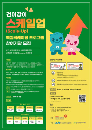 국민건강보험공단(이하 건보공단)은 설립 7년 이하의 잠재력을 지닌 보건·복지·환경 분야 사회적경제조직의 성장 지원을 위한 '건이강이 Scale-Up'에 참여할 기업을 내달 22일까지 모집한다고 28일 밝혔다.올해로 2회째 열리는 '건이강이 Scale-Up' 사업은 보건·복지·환경 분야 사회적경제조직의 스케일업을 위해 경영진단, 전문 멘토링, 컨설팅, 성장지원금 지원, 투자유치 연계 등 16주간 기관별 맞춤형 성장을 지원하는 엑셀러레이팅 프로그램이다. 이번 프로그램에 선정되는 8개 기업에는 총 4000만 원(각 5백만 원), 8개 기