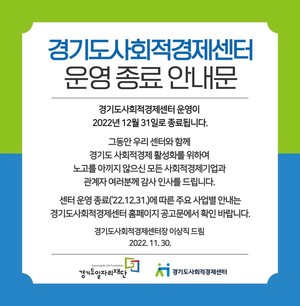 경기도사회적경제센터 운영 종료한다