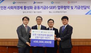 사회연대은행이 13일 인천항만공사, 수도권매립지관리공사, 한국환경공단 등 인천지역 3개 공공기관과 함께 인천 사회적경제 활성화 공동기금(I-SEIF, Incheon-Social Economy Impact Found) 업무 협약 및 기금전달식을 진행했다. 인천 사회적경제 활성화 공동기금(I-SEIF)은 인천지역의 사회경제 활성화 및 일자리 창출을 위해 인천항만공사, 수도권매립지관리공사, 한국환경공단 등 인천 지역 내 3개의 공공기관이 20일 업무협약을 맺고 기금을 조성한 것으로 사회연대은행은 공모절차를 거쳐 공동기금 위탁기업으로 선정