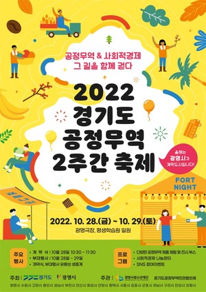 광명시는 '2022년 공정무역 2주간 축제(이하 포트나잇)'를 오는 10월 28일부터 29일까지 양일간 광명시 평생학습원에서 개최한다고 밝혔다.공정무역은 저개발국가 농민, 노동자, 생산자들이 겪는 빈곤문제를 해결하기 위해 시작한 공평하고 윤리적인 무역거래를 말한다. 36개국 2,000여 개의 도시, 마을이 공정무역마을 운동에 참여중이다. 경기도는 2018년부터 공정무역을 확산하기 위해 올해로 5회차 포트나잇을 개최하고 있다.광명시는 2022년 올해 포트나잇 개막도시로 선정돼 2주간의 축제의 시작을 알리는 개막식을 진행한다. 공정무역