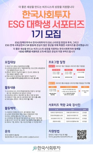 한국사회투자, 'ESG 대학생 서포터즈 1기' 모집 시작