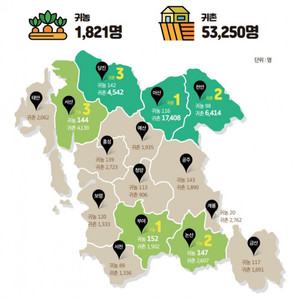 농촌지역의 활력을 되찾기 위한 해결 방안으로 귀농·귀촌이 떠오르고 있다.최근 충남연구원 조영재 선임연구위원은 충남의 귀농·귀촌 통계자료(통계청·농림축산식품부, 2021)를 분석한 인포그래픽에서 "저출생, 고령화로 지역경제의 활력이 떨어지고 있는 상황에서 '귀농·귀촌'은 지속가능한 충남 농촌을 만들어가는 핵심 키워드"라고 말했다.지난 2021년 기준, 충남의 귀농인구는 1,821명(전국의 12.6%), 귀촌은 53,250명(10.7%)으로 전국 지자체 중 각각 2위와 3위를 차지했다. 특히 수도권에서 충남으로 귀농·귀촌하는 인구가 전