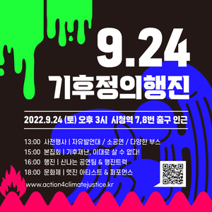 9월 24일, 세계 기후행동의 날을 맞아 서울 시내에서 '기후정의 행진'이 진행된다.기후행동의 날은 스웨덴의 환경운동가 그레타 툰베리가 시작한 '기후를 위한 학교 파업'에 전 세계 시민사회 단체가 동참하면서 시작됐다. 기후정의 행진을 주관하는 기후정의행동 홈페이지에는 "정부와 기업의 녹색성장과 탄소중립 정책이 기후위기를 해결할 수 없을 뿐만 아니라 새로운 돈벌이 시장을 창출하는 것에 불과한 상황에 맞서, 기후정의를 기치로 기후위기를 초래한 현 체제에 맞서고 모두가 평등하고 존엄한 삶을 살아가기 위한 세계를 만들기 위해 행동한다"고