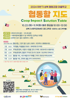 서울시 성북구가 '협동할 지도(협동조합으로 지역순환경제 모델 만들기)'라는 주제로 '제25기 성북 협동조합 마을학교'를 10월 22일부터 5주간 매주 화요일 운영한다.이번 주제는 기획재정부 제4차 협동조합 기본계획을 반영해 협동조합의 지속 가능한 발전과 연대·협력으로 시너지 창출을 위해 기획했다. 성북구 사회적경제 활동가 및 지역주민이라면 누구나 무료로 수강할 수 있다. 교육과정은 ▲협동조합 기본강의 ▲기후돌봄과 마을돌봄 ▲협동조합의 지역순환경제 실천방안 ▲기후위기 시대 협동조합의 역할 ▲협동조합 네트워킹 강화 등 총 5강이다. 기