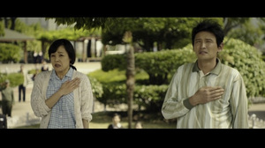 "그 과정에서 네가 이해할 수 없었던 한 가지 일은, 입관을 마친 뒤 약식으로 치르는 짧은 추도식에서 유족들이 애국가를 부른다는 것이었다. 관 위에 태극기를 반듯이 펴고 친친 끈으로 묶어놓는 것도 이상했다. 군인들이 죽인 사람들에게 왜 애국가를 불러주는 걸까. 왜 태극기로 관을 감싸는 걸까. 마치 나라가 그들을 죽인 게 아니라는 듯이." (한강 중에서)영화 에는 덕수(황정민)와 영자(김윤진)가 부부싸움을 하다가 국기에 대한 경례를 하는 장면이 나오는데, 매일 저녁 전국민이 국기 하강식에 동참해야 했던 때가