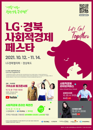 구미지역 LG자매사 협의체(LG전자, LG디스플레이, LG이노텍, 팜한농)인 LG경북협의회는 12일부터 11월 14일까지 경북도 내 사회적경제기업과 함께 하는 'LG·경북 사회적경제페스타'를 진행한다. 이 행사는 LG경북협의회가 코로나19로 달라진 일상 속에 새롭게 기획한 사회공헌 프로그램이다.이번 행사는 소비자들에게 사회적경제기업의 우수한 상품들을 소개하고, 판매수익을 다시 지역 저소득 아동의 치료비로 기부함으로써 가치 있는 소비, 윤리적 소비에 대한 관심을 불러일으키기 위해 기획됐다.행사 첫 날인 12일 오후 5시부터는 가수 하