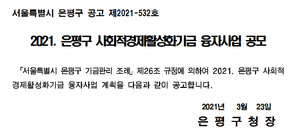은평구, 2021년 사회적경제활성화기금 융자사업 공모
