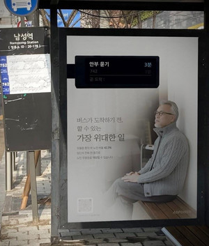 대학생 연합 광고동아리 '애드파워(ADPOWER)' 소속 너나들이팀이 4월 24일까지 남성역 3번 출구 앞 버스쉘터에 노인 우울증 예방을 위한 공익광고('가장 위대한 3분')를 게재한다.이 광고는 '애드파워' 소속 다섯 명의 대학생들이 자발적으로 기획한 공익 캠페인의 일환으로, 버스를 기다리는 짧은 시간 동안 어르신들께 안부 전화를 드려 노인 우울증을 예방하자는 취지로 제작됐다. 게재되는 광고에는 쓸쓸해 보이는 노인 위로 버스 전광판에 적힌 '안부 묻기 - 3분' 문구가 눈에 띈다. 광고에 언급되는 3분은 버스 기다리는 동안 어르신