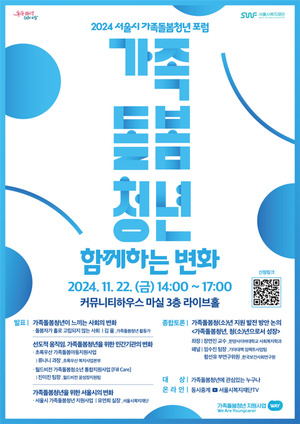 아픈 가족을 돌보느라 미처 자신의 건강과 마음을 돌보지 못하고 있는 가족돌봄청년을 지원하는 방안을 마련하기 위해 가족돌봄청년 당사자와 공공·민간기관이 한자리에 모인다. 서울시복지재단이 '2024 서울시 가족돌봄청년 포럼'을 22일 서울시 중구에 위치한 커뮤니티하우스 마실 라이브홀에서 개최한다.'가족돌봄청년, 함께하는 변화'를 주제로 열리는 이번 포럼에서는 가족돌봄청년을 둘러싼 사회적 변화를 중심으로 당사자, 공공기관, 민간기관 차원에서의 대응을 조명한다. 또한 서울시의 가족돌봄청년 지원사업을 통해 변화한 서울 청년들의 사례도 공유한