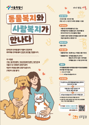 우리동생과 서울시가 2022년 4월부터 '2022년 취약계층 반려동물 복지지원사업'을 추진한다. 서울시가 2019년 조사한 반려동물을 기르는 취약계층 604명을 대상으로 한 ‘반려동물 양육 실태조사’에 따르면, 취약계층은 자신의 생활비를 줄여서라도 반려동물을 위해 지출했으며, 지출 금액도 전체 평균과 비슷한 수준이었습니다. 이에 반려동물을 키우고 있는 취약계층이 끝까지 동물을 책임질 수 있도록 중성화 수술을 비롯한 의료지원서비스와 반려동물돌봄교육 등을 지원합니다. 해당 사업은 우리동생의 ‘저소득주민 의료나눔 사업’을 시작으로 지난