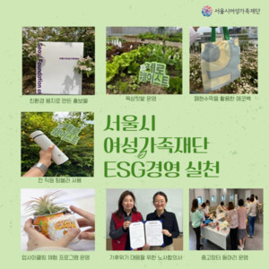 서울시여성가족재단에서는 6월 5일 세계 환경의 날을 맞아 기후위기에 대응하고 일상 속 탄소 줄이기에 앞장서고자 임직원들이 앞장서 환경 보호 실천에 나섰다. 지난 4월 17일에는 재단발전협의회를 개최하여 에너지 효율을 높이는 시설 운영 및 친환경 물품 사용 등으로 기후위기에 대응하고자 노사합의서를 통해 합의한 바 있다. 재단 경영진과 노동조합은 직원이 기후위기 대응에 공감하고 참여할 수 있도록 관련 내용을 필수교육으로 지정하고, 연 1회 이상 정기 캠페인을 실시해 기후위기에 대한 인식과 실천을 고양하기로 했다. ESG 경영의 실천을