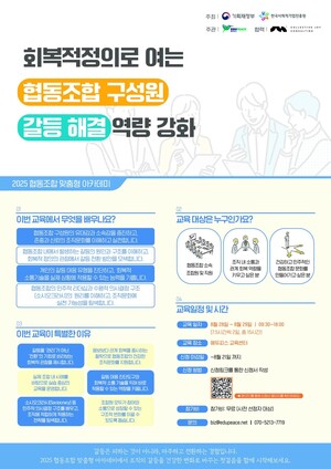 기획재정부와 한국사회적기업진흥원이 주최하고 에듀피스가 주관하는 2025 협동조합 맞춤형 아카데미가 오는 28일과 29일, 에듀피스 교육센터에서 열린다. 이번 교육은 협동조합 구성원들이 건강하고 민주적인 조직문화를 만드는 데 필요한 '갈등 해결 역량'을 높이는 데 초점을 맞췄다. 이번 아카데미는 협동조합 내에서 발생하는 갈등을 단순 관리가 아닌 '전환'의 관점에서 바라보고, 회복적 정의의 원리를 기반으로 실질적 해결 방법을 모색한다. 개인의 갈등 대응 유형을 진단하고 회복적 소통기술을 실습하는 과정을 통해, 현장에서 바로 적용할 수