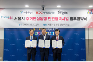 서울시가 취약계층의 열악한 주거환경을 개선하기 위해 HDC현대산업개발, 한국해비타트와 '주거안심동행 민관협력사업' 업무협약을 17일 서울시청에서 체결했다. 이날 협약식에는 유창수 서울시 행정2부시장, 김회언 HDC현대산업개발 대표이사, 이광회 한국해비타트 사무총장이 참석했다.이번 협약으로 서울시는 지원 가구를 선정하는 등 행정적 지원을, HDC현대산업개발은 집수리 사업비 2억 원을 후원, 한국해비타트는 가구별 맞춤 공사를 담당하게 된다.주요 대상은 반지하, 옥탑방, 최소 주거 면적(2인 가구 기준 26㎡) 이하 저층주택에 거주하는