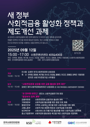 새 정부 국정과제에 포함된 사회연대금융 활성화 정책의 구체화와 제도 개선 방향을 논의하는 자리가 마련된다.사단법인 한국사회연대경제는 오는 9월 12일 오후 3시 수원컨벤션센터에서 ‘새 정부 사회적금융 활성화 정책과 제도 개선 과제’ 포럼을 개최한다. 이번 포럼은 국회의원 이학영·정태호·복기왕·이수진·이강일·용혜인·차규근·정혜경·최혁진 의원과 한국사회연대경제가 공동 주최하며, 한국사회연대경제 금융위원회와 경기도사회적경제원이 주관한다. 한국예탁결제원 KSD나눔재단이 후원하고, 경기사회복지공동모금회가 지원한다. 행사는 정부·국회·민간이