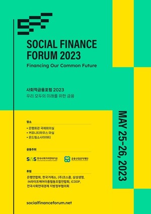 (재)한국사회가치연대기금과 (재)금융산업공익재단은 오는 25일과 26일 양일간 서울 명동 일대에서 '2023 사회적금융포럼(Social Finance Forum 2023)'을 개최한다.올해 처음 개최되는 '사회적금융포럼'은 "우리 모두의 미래를 위한 금융: 지속가능한 사회를 위한 금융의 역할"을 주제로 (재)한국사회가치연대기금, (재)금융산업공익재단이 공동주최하고, 은행연합회, 한국거래소, (주)코스콤, 삼성생명, iN라이프케어이종협동조합연합회, iCOOP, 전국사회연대경제지방정부협의회 후원으로 열린다. 우리 사회에서 금융의 새로운