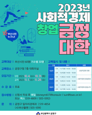 부산시 금정구, 2023년 사회적경제 창업 금정대학 수강생 모집