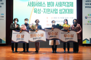 보건복지부는 19일 서울 포스트타워에서 '사회서비스 분야 사회적경제 육성·지원사업' 성과대회를 개최하고, 충북 진천군(대상) 등 우수 지자체 4곳에 장관상을 수여했다.이번 성과대회는 올해 사회서비스 분야 사회적경제 육성·지원 사업을 수행하는 12개의 지방자치단체 중 우수지자체를 포상하고, 우수 모형(모델)을 공유·확산하고자 마련됐다.'사회서비스분야 사회적경제 육성지원사업'이란 주민참여 또는 지역 내 사회적경제 조직 간 연계·협력을 통해 지역사회에 필요한 사회서비스를 제공하는 모델을 개발·확산하기 위한 사업이다. 사업을 수행하는 지자