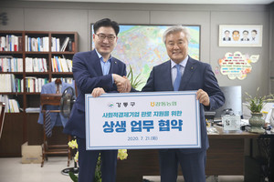 강동구와 강동농협이 '사회적경제기업 판로 지원을 위한 상생 업무 협약'을 21일 체결했다.이번 협약은 회적경제기업 마켓인 강동어울장 개최, 사회적경제 활성화 및 사회적경제기업의 판로 확대를 위한 상호 협력 등을 담고 있다.협약에 따라 사회적경제기업 마켓 '강동어울장'이 7월 22일부터 9월 2일까지 매주 수요일마다(휴가철인 7월 29일, 8월 5일 제외) 강동농협 하나로마트 로데오점에서 열린다.9월에는 강동농협 하나로마트 4곳 안에 사회적경제기업 제품 홍보 판매대를 조성해 기업에 상설적인 판로를 지원하고 주민들에게는 사회적경제기업