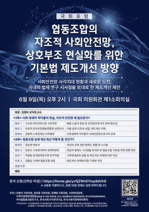 '협동조합 자조적 사회안전망, 상호부조 현실화를 위한 기본법 제도개선 방향' 논의...9일 국회 공동 포럼 개최
