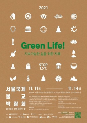 '2021 서울국제불교박람회'가 내달 11일~14일까지 서울 강남구 서울무역전시컨벤션센터(SETEC)와 온라인에서 열린다.'그린 라이프(Green Life), 지속가능한 삶을 위한 지혜'를 주제로 열리는 박람회는 1~3관의 주제전과 기획전, 릴레이 강연 등이 온·오프라인에서 열린다.불교계 환경단체인 불교환경연대는 '녹색불교가 미래다' 주제전을 통해 기후위기 시대 녹색 사찰을 꾸려나가는 방법을 제시한다. 불교환경연대는 불교의 생명존중 가르침을 바탕으로 '환경보살'의 길을 가고자 하는 불자들이 모인 단체다. 산과 강을 지키는 환경운동과