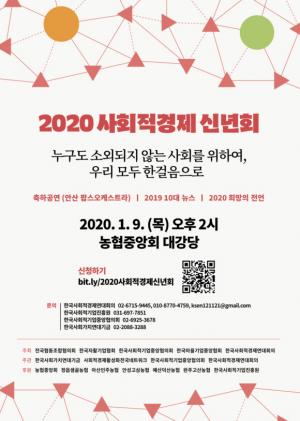 전국협동조합협의회, 한국자활기업협회, 한국사회적기업중앙협의회, 한국마을기업중앙협회, 한국사회적경제연대회의가 공동으로 주최하는 '2020 사회적경제 신년회'가 9일 오후 2시 농협중앙회 대강당에서 개최된다.'누구도 소외되지 않는 사회를 위하여, 우리 모두 한걸음으로'란 슬로건으로 개최되는 이날 신년회에는 사회적경제 대표 및 활동가, 연구 및 지원조직, 정부 관련 부처, 사회가치 실현에 앞장선 공공기관, 사회적책임에 노력하는 CSR 우수 기업 관계자 등 300여 명이 참석할 예정이다.축하와 격려, 도전과 실