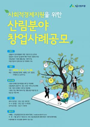 산림조합중앙회는 산림분야 일자리 창출에 대한 기반구축과 조합원과 임업인 중심의 사회적경제지원으로 산림산업 활로모색을 위한 산림분야 창업사례를 공모한다. 이번 창업사례 공모는 산림산업 및 임산물 유통, 회원조합 신용사업 등 산림분야 전반에 걸쳐 진행되며 발굴된 우수사례를 기초로 산림조합 일자리 창출 기본 계획에 반영하고 우수 제안자(회사)와는 전략적업무협약(MOU)과 공동창업, 대행사업 등 산림조합과의 적극적인 상생협력 관계를 구축, 산림분야 일자리 창출과 산림산업 활성화 모델을 만들어가게 된다. 공모분야는 ▲산림과 연