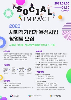 사단법인 상생나무는 한국사회적기업진흥원과 혁신적 아이디어를 갖고 사회 문제를 해결하는 예비사회적기업가의 창업 활동을 지원하기 위한 '2023년도 사회적기업가 육성사업' 전남권역 초기 창업팀을 모집한다.사회적기업가 육성사업은 예비사회적기업 진입을 목표로 지역의 창의적 인재를 발굴해 사회적 목적 실현 및 창업에 필요한 공간, 사업비, 교육, 멘토링, 네트워크 등 사업화에 필요한 모든 과정을 지원한다.1월 30일 오후 5시까지 온라인(사회적기업 통합정보시스템) 또는 방문·우편(상생나무)을 통해 접수할 수 있으며, 모집 세부 내용과 지원