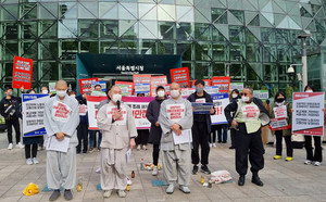 대한불교조계종 조계사와 서울시 마을공동체 종합지원센터 관계자들이 22일 서울시청 앞에서 기자회견을 열고 ▲일방적 마을공동체 조례 폐지 반대 ▲불교계 기만 서울시 규탄 ▲민간위탁 노동자 고용안정 보장 등을 촉구했다. 짓밟는 정치탄압을 즉각 중단하라고 촉구했다. 이들은 "서울시가 결정하고 서울시의회가 입법 예고한 '서울시 마을공동체 활성화 지원 조례 폐지안'을 즉각 철회하라"고 촉구했다. 또한 "조계사가 서울 마을센터를 수탁받은 이후 일방적인 종료 통보를 보낼 때까지 단 한 번도 계약 종료나 사업 폐지를 언급한 바 없다"며 "이 과정에