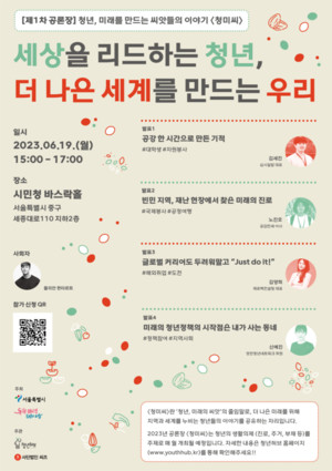 서울특별시 청년허브가 다양한 사회문제를 해결하고 미래를 개척해 나가고 있는 청년들의 활동을 소개하고, 해결 방안을 함께 모색하는 청년 공론장 '청년, 미래의 씨앗(청미씨)'를 개최한다. '세상을 리드하는 청년, 더 나은 세계를 만드는 우리'를 주제로 한 첫 번째 공론장은 6월 19일 15시 시민청 바스락홀에서 진행된다. 청년허브는 지난 2013년부터 ▲국내외 청년 네트워크 구축 ▲정책 연구 ▲커뮤니티 및 단체 활동 지원 등의 기능을 수행하고 있다. 이번 공론장 주제는 '청년들이 변화의 씨앗을 심는 사람들'이라는 의미를 담아 '청년,