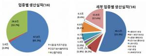 지난해 국내 식품산업 생산실적은 약 73조3000억 원으로 '15년 대비 4.1%, '12년 이후 연 평균 2.8%로 꾸준히 성장하고 있는 것으로 나타났다.식품의약품안전처(이하 식약처)에 따르면 '16년 식품산업 생산실적은 국내 제조업 총생산(GDP) 대비 16.9%, 국내 총생산(GDP) 대비 4.5%를 차지하는 것으로 조사됐다. '16년 식품산업 생산실적 분석 주요 내용은 ▲업종별 생산실적, 식품제조·가공업이 55.3% ▲식품유형별 생산실적, 돼지고기 포장육이 1위 ▲건강기능식품 중 생산실적 성장률