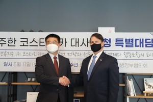 코스타리카의 알레한드로 로드리게스 주한 대사가 지난 5월 11일 강원도 원주시를 찾았다. 먼저 코스타리카와 원주의 경험이 공유하고 협력 방안을 모색하기 위한 대담이 진행됐다. 이번 행사는 사회적 경제를 사회·경제 발전을 위한 중요한 전략으로 삼고 있는 코스타리카와 협동조합 도시 원주가 만나 서로의 경험을 공유했다는 점에서 의미가 있다. 대담은 원주를 대표해 최혁진 한국보훈의료복지공단 상임이사(前 청와대 사회적경제 비서관)가 참석하고 한국사회가치연대기금 이사장이 좌장을 맡고 상지대학교 벤처창업관 코워킹스페이스에서 진행됐다.Q. 코스타