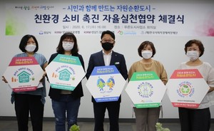 성남시가 성남아이쿱생협, 성남드림아이쿱생협, (사)참여하고행동하는소비자의정원, 한국사회적경제씨앗재단과 '친환경 소비 촉진 자율실천협약'을 지난 17일 체결했다.이날 협약은 친환경 소비를 촉진하여 자원순환도시를 구축하기 위해 진행됐다. 협약서에는 ▲자원순환 실천사업과 재활용 문화 확산을 위한 공동 협력 ▲자발적인 시민참여 유도 ▲자원순환 인식증진을 위한 교육과 프로그램 운영 등의 내용이 담겼다.코로나19 바이러스 확산에 따른 비대면 택배 수요 증가로 전국에서 택배 폐기물의 양이 급격히 증가하고 있는 상황에서, 각 주체는 소비·유통과정