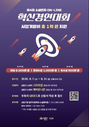 성동구와 소셜엔터프라이즈네트워크가 주최·주관하고 엠와이소셜컴퍼니(MYSC), 코네티브 씨(CC), 이빛컴퍼니가 협력하는 '제4회 소셜벤처 on-line 혁신경연대회(이하 혁신경연대회)' 참가 기업을 8월 31일까지 모집한다.