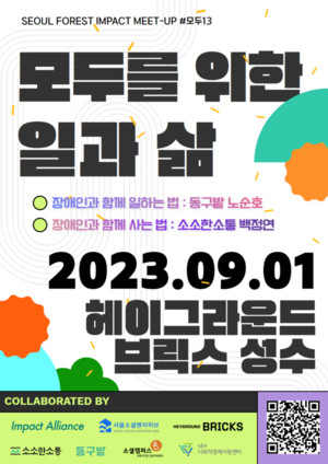 임팩트얼라이언스는 장애인 접근성 향상을 위한 '서울숲임팩트밋업 #모두13(모두를 위한 일과 삶)'을 개최한다고 밝혔다. 이번 '서울숲임팩트밋업 #모두13(모두를 위한 일과 삶)'은 내달 1일 오후 4시부터 6시까지 헤이그라운드 브릭스 성수에서 개최될 예정이다. 동구밭 노순호 대표는 '장애인과 함께 일하는 법'에 대해 발제할 예정이며, 소소한소통 백정연 대표는 '장애인과 함께 사는 법'이라는 주제로 발표한다. 행사 당일 오전 10시부터는 해당 장소를 리모트워크 공간으로 이용할 수 있다.