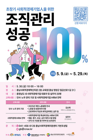 충청남도, 충남사회적경제지원센터, 한국사회적기업진흥원 소셜캠퍼스 온 충남이 충남도 내 사회연대경제기업 대표자 및 실무자를 대상으로 '조직관리 성공 100%' 역량강화 교육을 30일 충남사회적경제혁신타운 2층 교육장에서 개최한다고 밝혔다. 이번 교육은 사회연대경제기업이 조직을 운영하면서 빈번히 발생하는 인사·노무 이슈, 갈등관리, 평가보상체계 미비 등의 문제를 해결하고 체계적인 HRM(인사관리) 전략 수립 역량을 높이기 위한 실무형 교육으로 기획됐다.