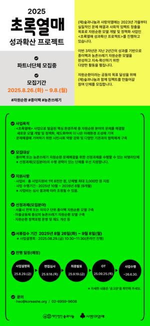 '2025 초록열매 성과확산 프로젝트' 수행단체 모집