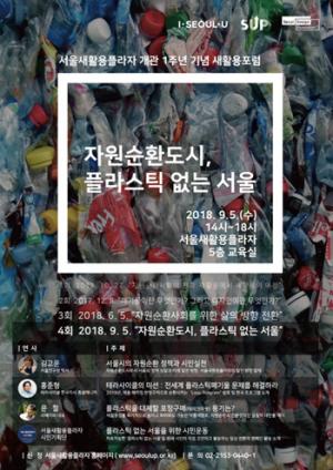 서울디자인재단에서 운영하고 있는 서울새활용플라자에서 개관 1주년을 맞아 오는 5일 오후 2시부터 6시까지 서울새활용플라자 5층 교육실에서 제4회 새활용포럼 '자원순환도시 : 플라스틱 없는 서울'을 개최한다. 이번 포럼에서는 최근 대두되고 있는 플라스틱 문제에 관한 명사들의 강연과 발제를 통해 플라스틱 문제에 관한 정보를 제공하고 사회적 인식을 공유하며, 플라스틱 없는 서울을 위한 시민운동에 관한 사례를 소개한다.포럼에 앞서 서울새활용플라자 윤대영 본부장이 서울새활용플라자 개관 1주년 성과 발표 및 방향성을 제시한다.포
